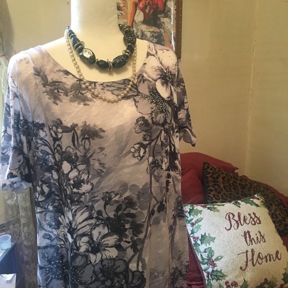 Soft flower print with embellishments gray