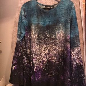 Multicolored Jacquard Bell Sleeve Tunic Trendy & Dramatic.