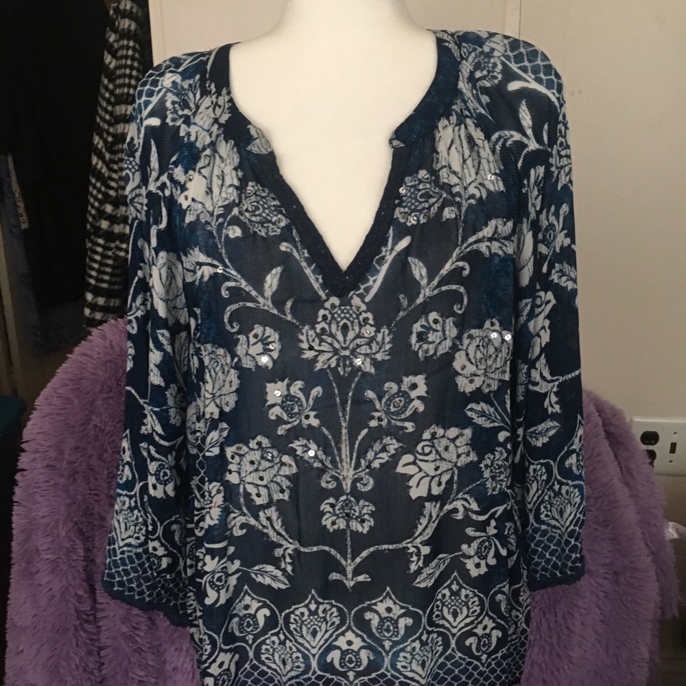 Blouse for warmer weather has some sequins on it