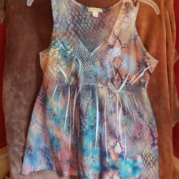 Cute tank, 100%polyester multi color/snake print !! Crease's are white