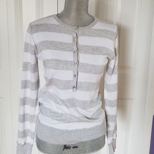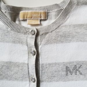 Michael Kors cotton stripe top with MK rhinestones on the chest and front buttons.