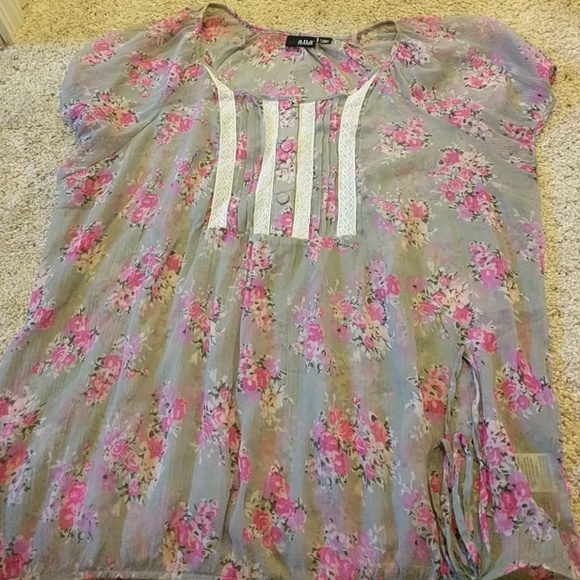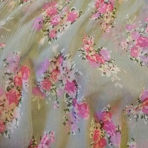 Gray, with pink flowers. See through material.