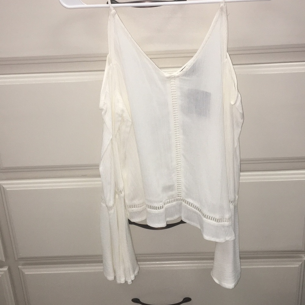 White cold shoulder, long sleeve top