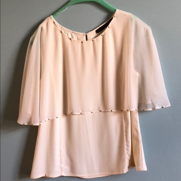 Viscose blouse. Covers shoulder but see through on arms. Very elegant, can we worn for formal event, work and casual when going out