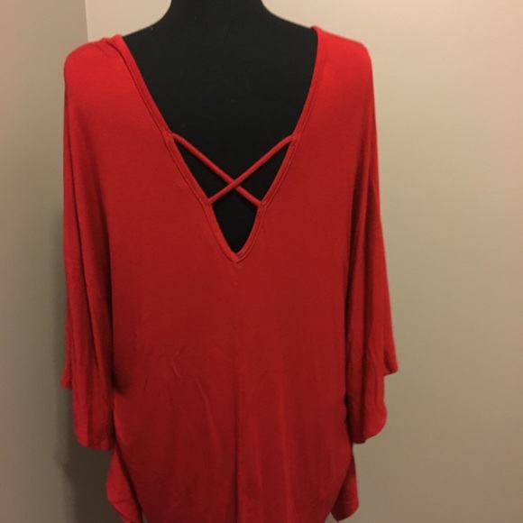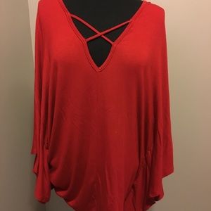 Red flowing winged top with criss cross straps on top front & back. NWT