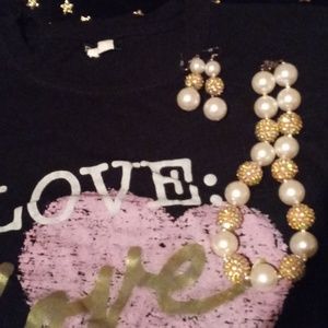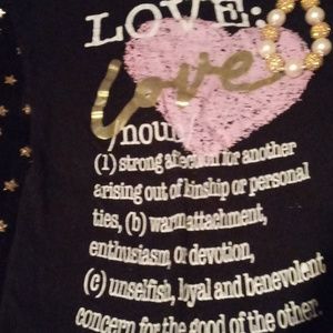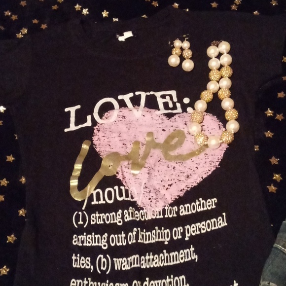 A black Tee Shirt with Love written in the front ( Jewyler not Included)