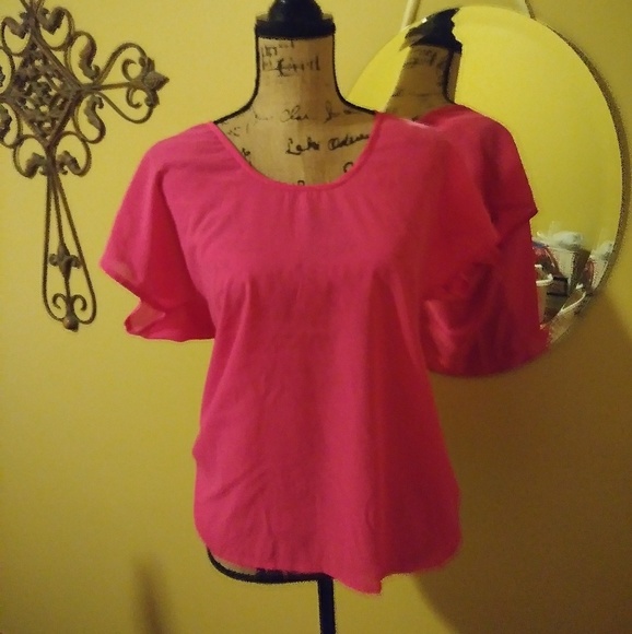 Hot pink polyester top w gold top zip at top of back