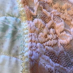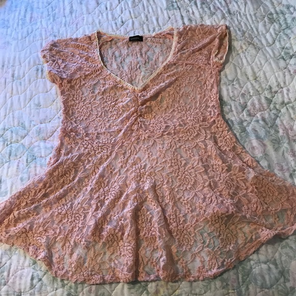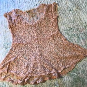 Lacy, soft top...light peach color... beautiful condition....tag says maternity but can be worn any style... pit to pit measures 17”.... shoulder to hem 26”