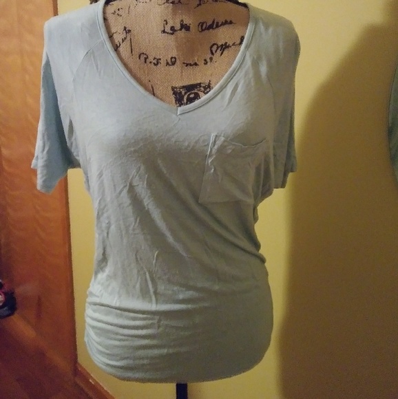 Light blue/ green ..almost lightest shade of teal w small pocket on front..Studio Y Maurices