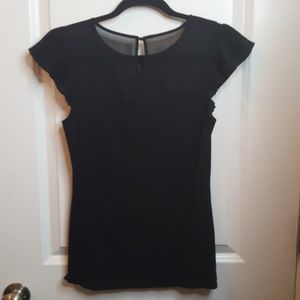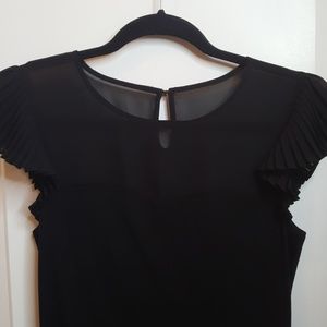 Black cotton stretch top with pleated sleeves.