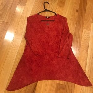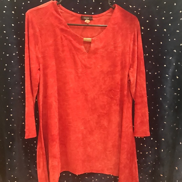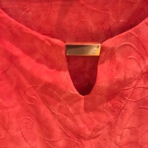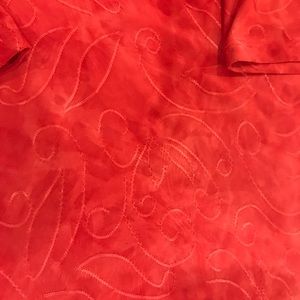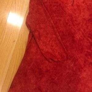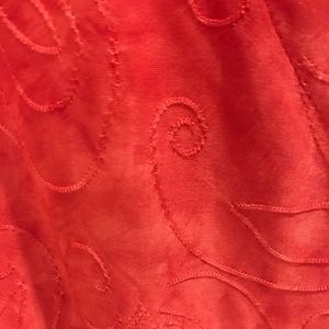 Great Pre owned condition It's not red but orangish red Has embroidered floral design all over the top