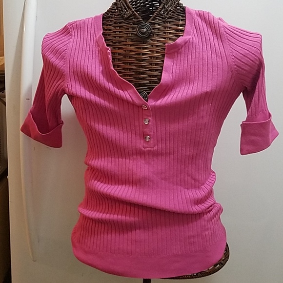 Pink short sleeve 3 button neck detail