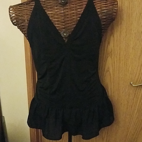 Black sleeveless ,tanktop.button down detail with ruffle trim