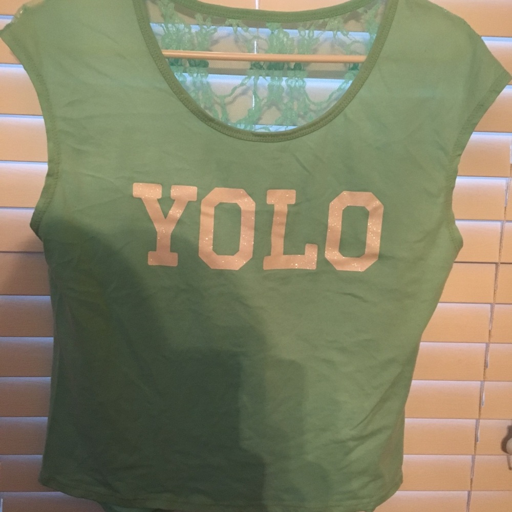 Yolo saying on the shirt its a lime green tshirt
