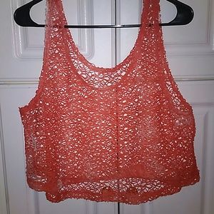 Crop top. Knitted look. Adorable over a tank top or bathing suit top with high waisted bottoms