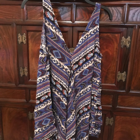 Aztec patterned long tank top. Asymmetrical bottom.