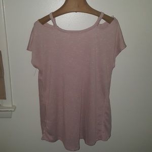 Lite weight cold shoulder pale pink top slightly longer in the back.