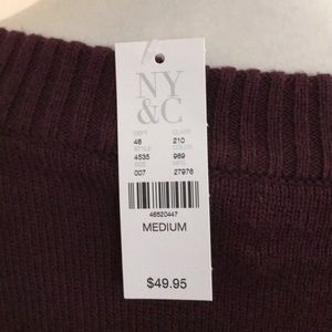 Lace- Up “V” neck sweater true burgundy. Lace- up closure and grommet hardware. Ribbed knit trim. Hits at hip, 53% Acrylic, 40% Rayon and 7% nylon. NWT