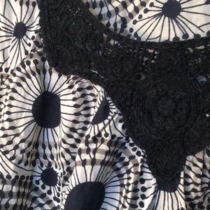 The crochet detail is black and the dots all over are dark navy.
