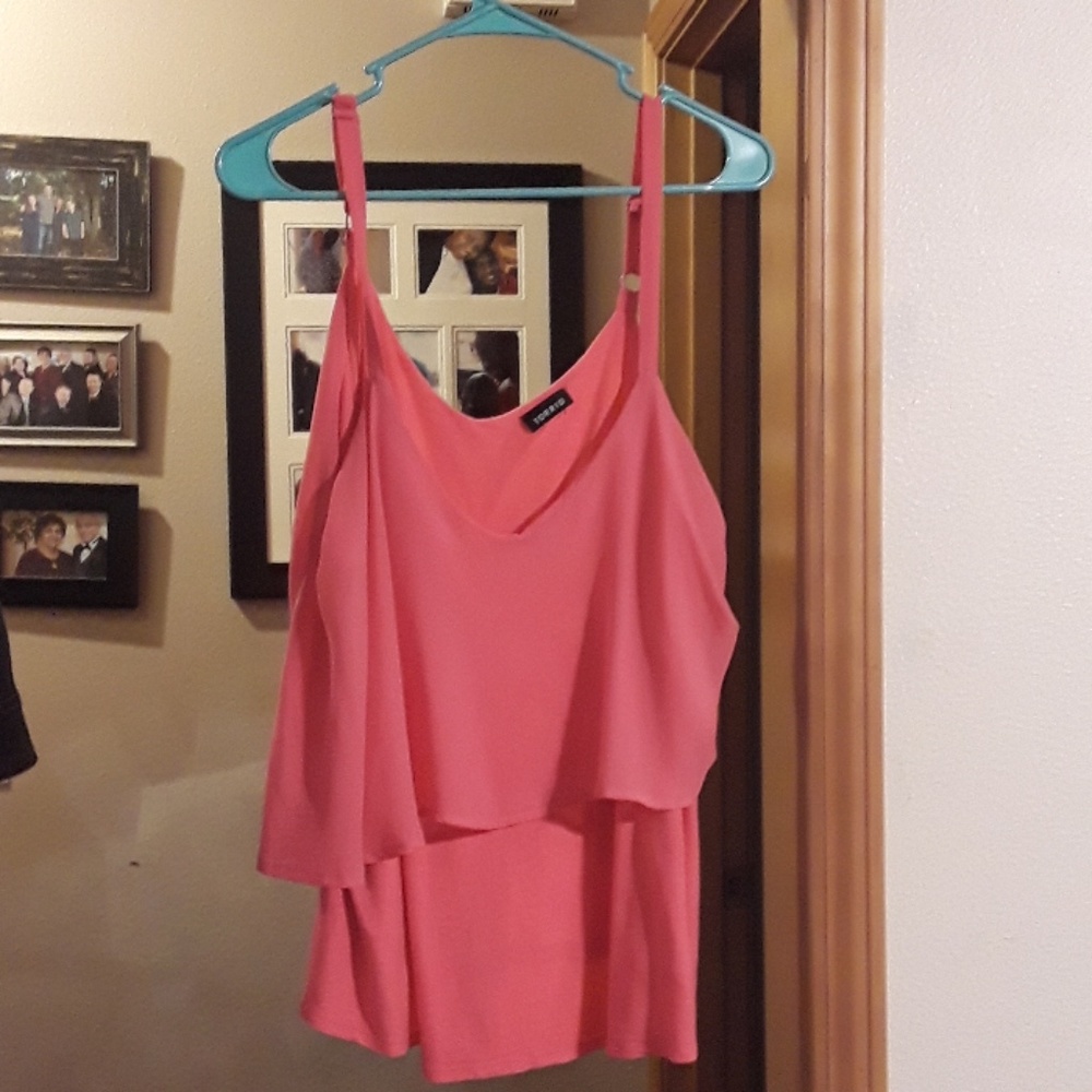 Bright pink dressy tank. Sheer flowy top