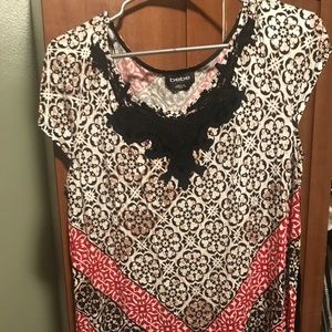 Top, has high slits up the sides so couldn't wear as a dress, would look amazing paired with black legging or leather bottoms!