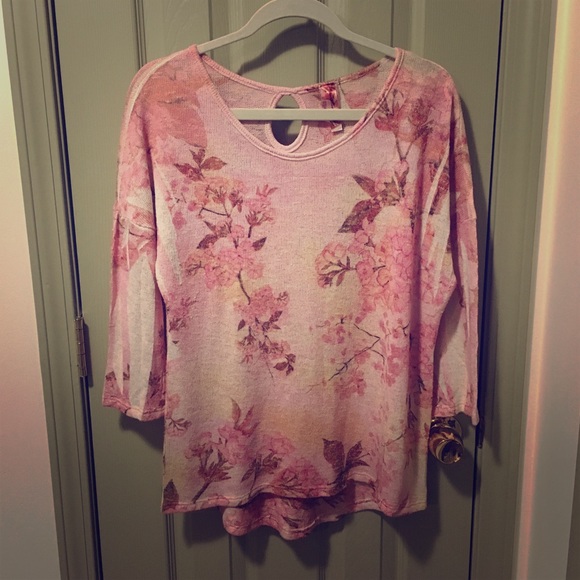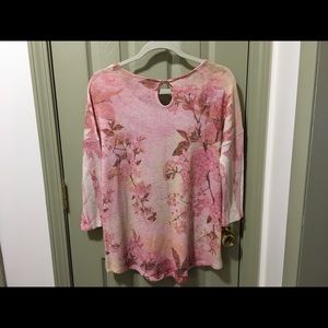 This top is very comfy! Beautiful, romantic shades of pink and cream.