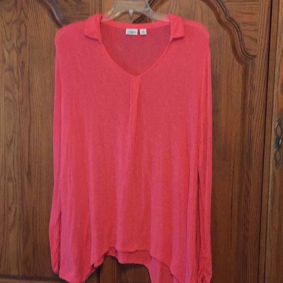 Light weight. Great for layering. Asymmetrical hem. Lovely coral color