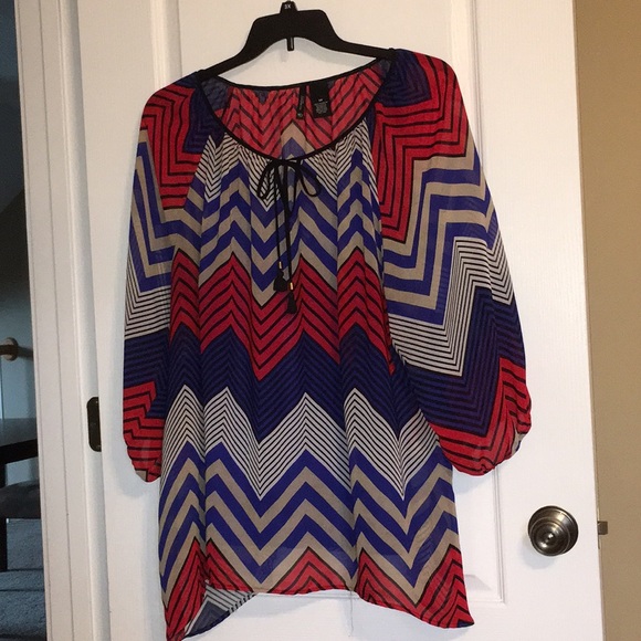 Beige, red, navy. Polyester. Tank underneath
