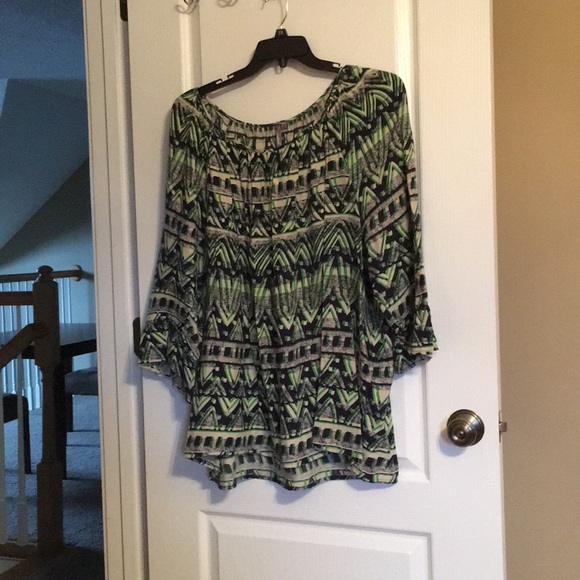 Beige, navy,green. Rayon. 3/4 sleeve