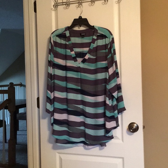 Polyester, navy,white,teal. 3/4 sleeves