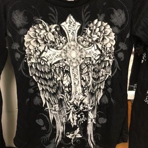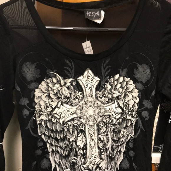 The back is all see threw , long sleeves - the cross is on both sleeves . New with tags