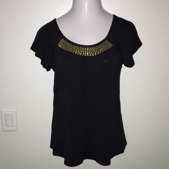 Black shirt with gold accent