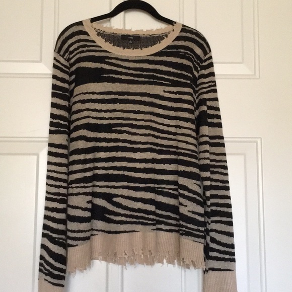 Fate knit sweater with fringe bottom and sleeves in Black and Tan. Large. Width 23” from seam to seam. Never worn.