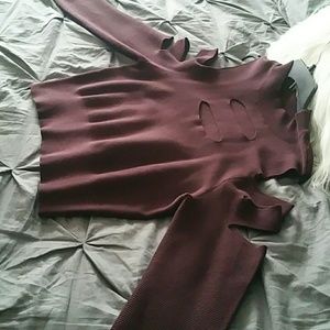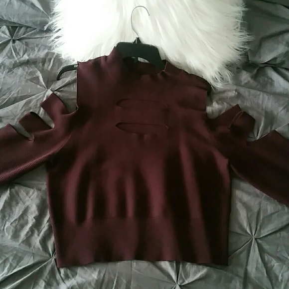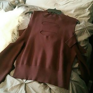 Purple sweater with a little pazazz, this sweater has cut out in both sleeves and front of sweater . Very nice. Worn only once. ***Size says XXL but fits like a Medium.