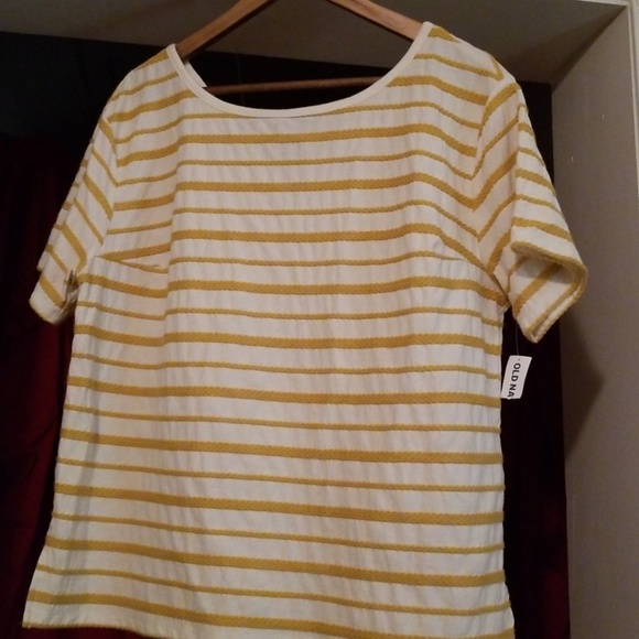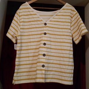 Cream with golden rod rope stripes. The first picture is the front. Buttons for style down the back. Brand new with tags