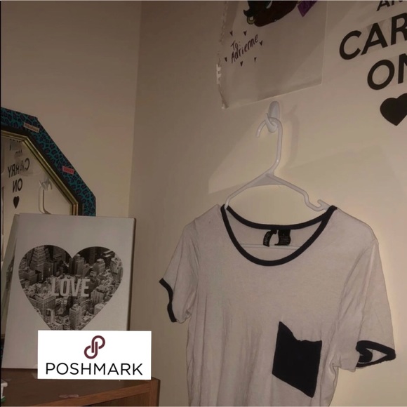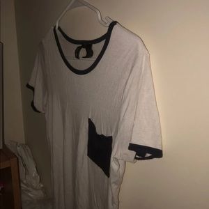 White, short sleeved shirt with a front pocket.
