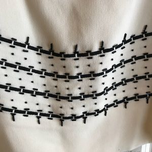 Dressy sleeveless she’ll, square neckline with black beaded trim