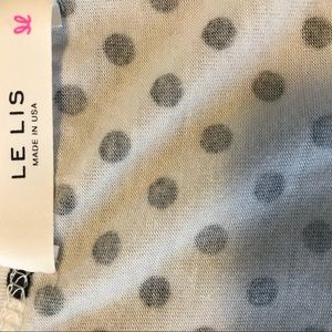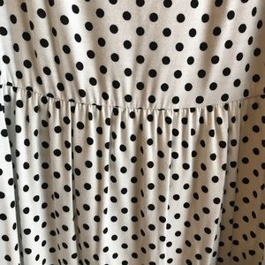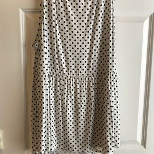 Long sleeveless top, cream with navy polka dots. Back has a gathered peplum. Never worn!
