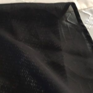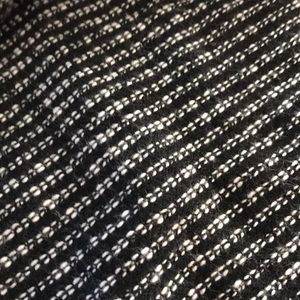 Black and white pin stripe top with Skelton on the front. The back is solid black with a split going down the back. The backside of the sleeves has a small skeleton on the elbows. It’s a small but I usually wear a medium so it’s made like a medium