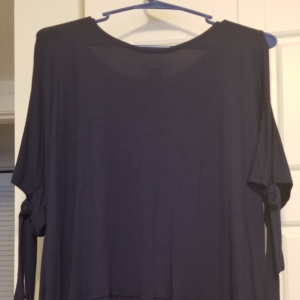 Loose fitting thigh length top. Great length for leggings. Small fits like a med