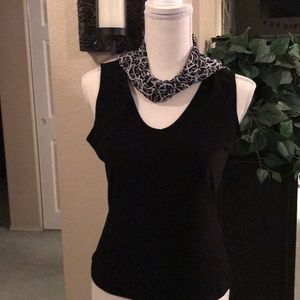 Black tank with attached scarf another one of my favorites. You can dress it up or down.