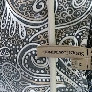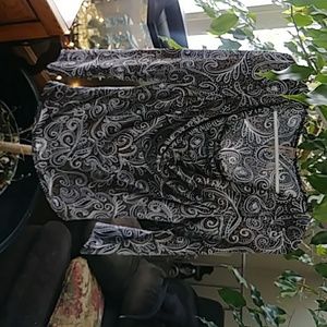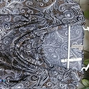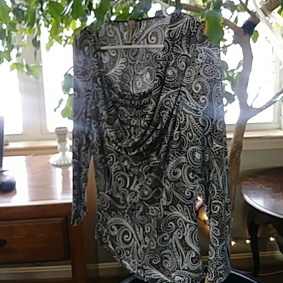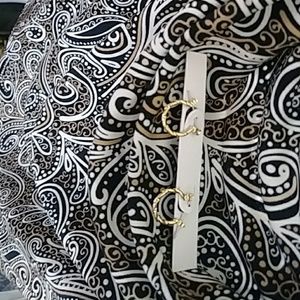 Beautiful faux cowl necked dress top in paisley , camel, black and white mixed. Thin and comfortable. Great statement piece!! The earrings are gold toned and a gift to wear with the top!!😎
