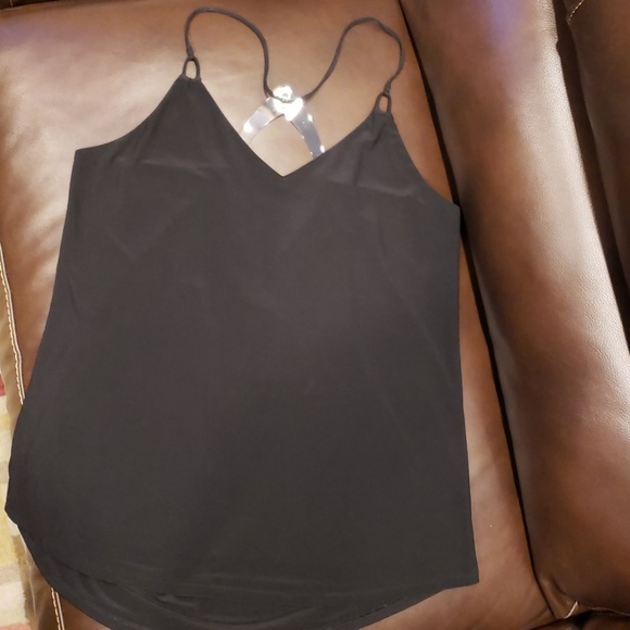 Black strap Express top with silver metal piece on the back attached to straps. New with tags.
