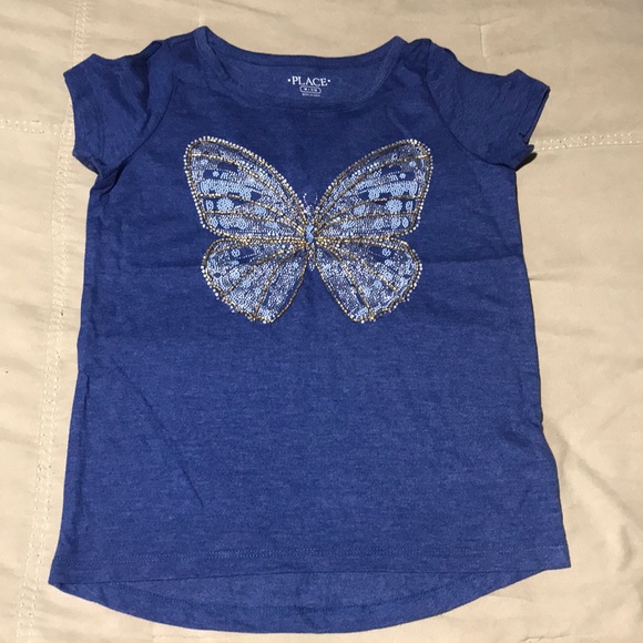 Beautiful blue top. Gorgeous butterfly with beads and shimmer details. Cold shoulder. Runs small