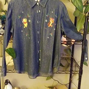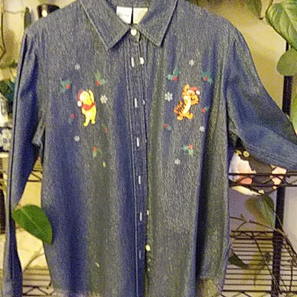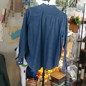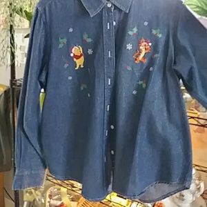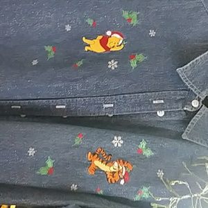 Made of denim woven fine silver, darling Xmas shirt, embroidery perfect, worn gently, double button on cuff.