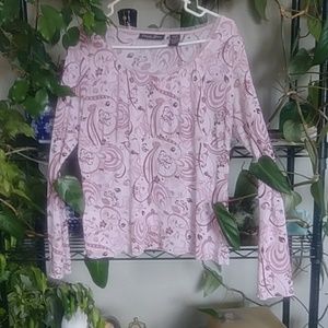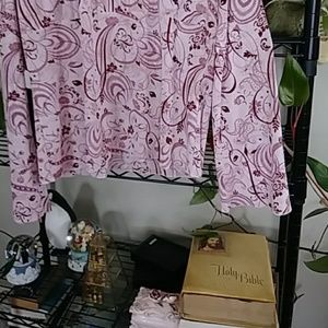 Fabulously sheer and soft, soft small lace ruffle around neck line. Worn gently. Looks great over leggings or jeans!!