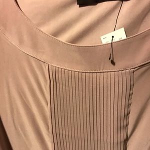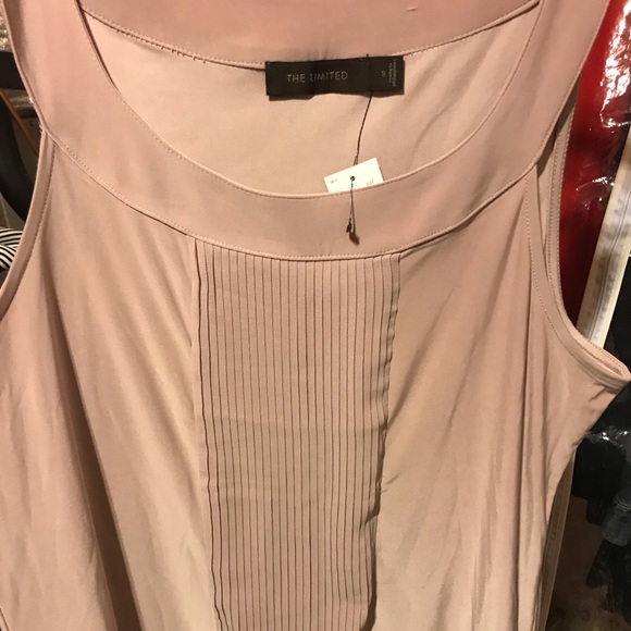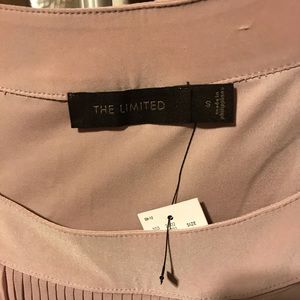 Slinky light pink/mauve top size small with a banded bottom so it blouses nicely with skirts or slacks. The is new with tags from the limited and is polyester/spandex blend.