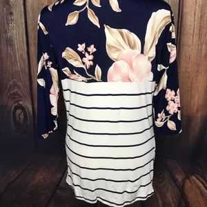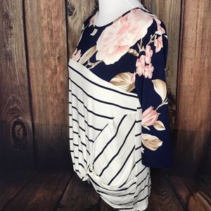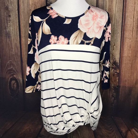 Side knot top with quarter length sleeves.