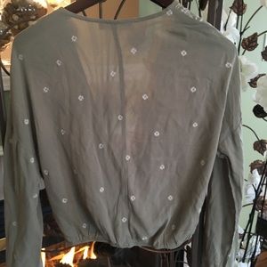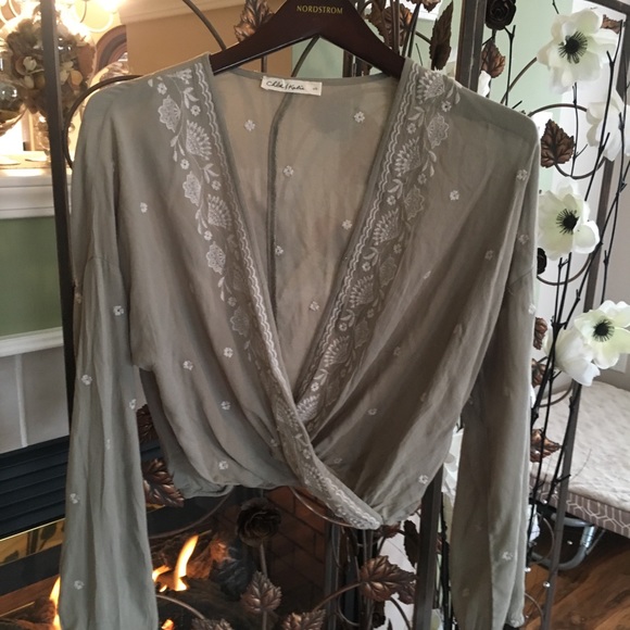 Sage in color with white embroidered flowers and fans beautiful detail elastic waist, looks great over a White Cami