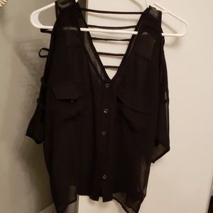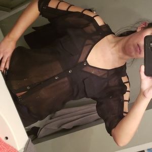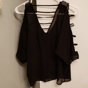 Black sheet v neck top with straps down the arm & across the back